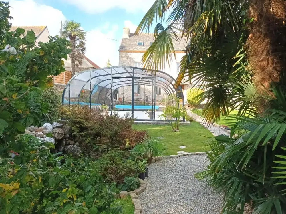 Cadre historique: Le Manoir de Kérofil à Guiclan propose un bâtiment historique récemment rénové avec une piscine, une terrasse solaire et un jardin luxuriant. Les clients apprécient le wifi gratuit, un salon et des salons extérieurs. Hébergement confortable: Les chambres proposent des salles de bains privées, des vues de jardin ou de piscine, et des équipements tels que le thé et les cafetières, les sèche-cheveux et l'inonction. Un parking privé gratuit sur place est disponible. Expérience culinaire: Le restaurant familial sert une cuisine française dans une ambiance traditionnelle. Le petit déjeuner comprend des options continentales et buffet avec des pâtisseries fraîches, des fruits et du jus. Attractions locales: situé à 21 mi de l'aéroport de Brest Bretagne, les points d'intérêt à proximité comprennent le musée naval Brest (28 mi) et la paroisse de Saint-Thégonnec (5 mi). Les clients peuvent profiter de visites à pied et de randonnée.